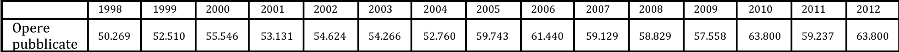 Incominciamo coi libri: secondo l’Istat le opere pubblicate sono passate dalle 50.269 del 1998 alle 63.800 del 2012.