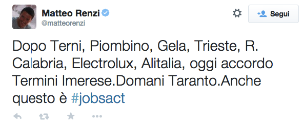 Intendiamoci: gli ammortizzatori sociali servono. Ma il loro scopo dev’essere innanzitutto favorire la difesa e la creazione di posti di lavoro “veri”, aiutando i lavoratori che hanno perso il lavoro a riqualificarsi e cercarne un altro, non a fingere che esista ancora quello perduto. Questo è, o dovrebbe essere, anche il senso principale del Jobs Act, almeno come lo avevo compreso io: in una fase come questa non è possibile ridurre le protezioni sociali senza contropartita; e la contropartita dev’essere costituita da “ammortizzatori” che non si basino sul congelamento del posto di non-lavoro e da servizi utili e concreti per trovare una nuova occupazione (su questi punti è molto chiaro un articolo del Corriere.it). Che avvenga attraverso i Centri per l’Impiego (ma certo non come sono oggi) o per altri canali, i lavoratori dovrebbero ricevere un’indennità temporanea e un aiuto efficace a ricollocarsi, come avviene in altri paesi europei. In questo senso, l’affermazione di Renzi per cui “anche Termini Imerese è #jobsact” non pecca solo di propagandismo: è contraria al senso stesso del Jobs Act.