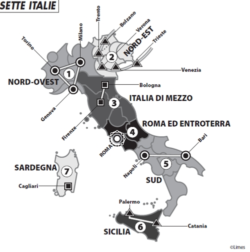 Terza questione (fondamentale): con quale criterio accorpare? Supponendo una reale volontà politica a perseguire questo obiettivo tutto si giocherà su questo: chi mettere assieme a chi, quali regioni eventualmente smembrare in più parti, ciascuna destinata a una nuova macroregione, come nella proposta di Morassut e Ranucci. Ci conosciamo abbastanza come popolo dei mille campanili e immagino i mugugni che diventeranno pressioni, pressioni che diverranno veti, trasformando un progetto necessario in un polpettone indigeribile. Io penso che fino a un certo punto sia giusto tener conto delle affinità culturali e linguistiche, generalmente correlate con trascorsi storici comuni. Ma solo fino a un certo punto. La vera sfida è la semplificazione amministrativa e, conseguentemente, l’efficienza burocratica e l’efficacia delle politiche; dovremo allora pensare a territori che, sia pure nella vastità “macro”, presentino delle affinità economico-sociali, in modo da essere oggetto di politiche concentrate e mirate; e che siano di ampiezza almeno vagamente simile (non macroregioni enormi e finte macroregioni piccole) in modo da contare in maniera simile nel dibattito nazionale. In questo senso la proposta di Morassut e Ranucci mi sembra abbastanza logica nel quadrante settentrionale ma molto meno in quello meridionale. La “Regione del ponente”, per esempio, formata da Calabria più provincia di Potenza, arriva a circa 2.390.000 abitanti, laddove la Lombardia sfiora i 10 milioni, il Triveneto 7 milioni e 200.000, la regione Apenninica quasi 5 e così via. Ha senso? Una Calabria per tanti versi penalizzata nel quadro nazionale non migliorerebbe in nulla per l’aggiunta di Potenza, mentre si potrebbe considerare una più ampia regione meridionale con Calabria, Basilicata e Puglia (ed eventualmente Molise), che malgrado alcune storiche rivalità (fra le tante che percorrono l’Italia) potrebbe meglio ottimizzare la diversificazione delle risorse in un quadro storicamente e socio-economico abbastanza omogeneo.