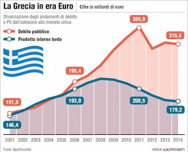 Per poter rispondere dobbiamo dare un’occhiata alla situazione finanziaria greca. La Grecia è messa talmente male, e ha talmente tanti svantaggi strutturali, che potrebbe essere assai più facile per lei uscire dall’Euro che non per l’Italia o altri Paesi. Il perché l’Italia non potrebbe facilmente chiudere la partita con l’Euro l’abbiamo scritto chiaramente su Hic Rhodus tempo fa e rinvio a quell’articolo tutt’ora validissimo. Rispetto alla situazione spiegata in quell’articolo quella della Grecia e diversissima; prendiamo per esempio il cruciale tema del debito: secondo alcuni analisti il debito pubblico ellenico ammonta a 324 miliardi di euro (pari ad oltre il 175% del Prodotto interno lordo!).