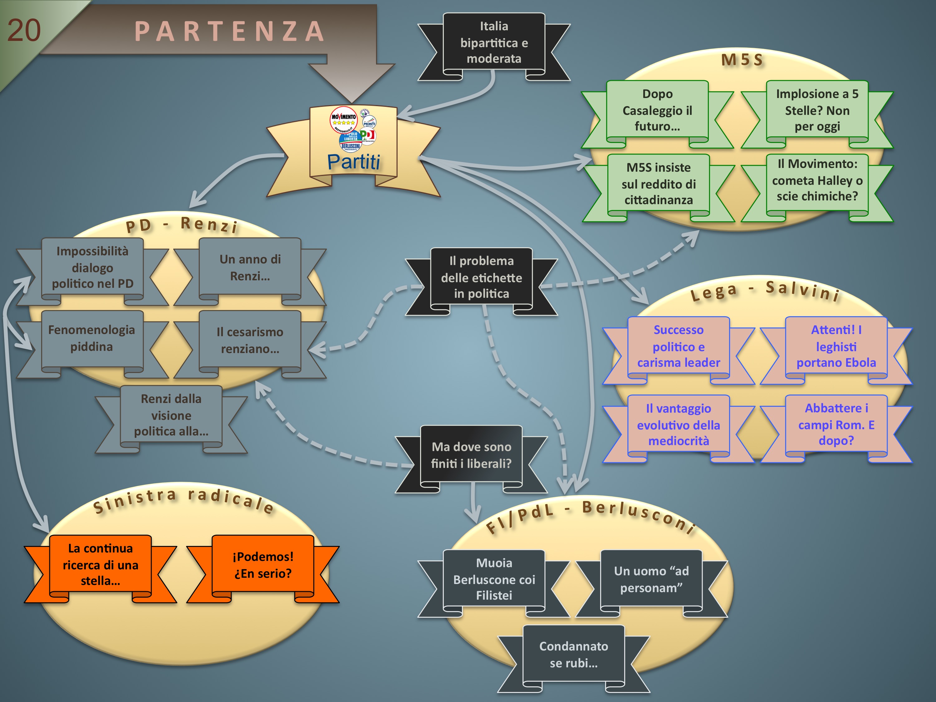 - Ma Grillo è fascista o no? E Renzi è democristiano o cosa? Berlusconi è davvero un liberale? Il problema delle etichette e la loro inadeguatezza nella classificazione politica, di Bezzicante, 11 Giugno 2014.