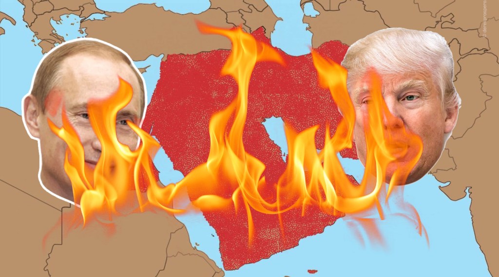 Col Venezuela la partita è stata facile, anche con l’aiuto di Chavez, e il Paese è allo stremo. Ma con i veri antagonisti le cose sono più complicate; l’Iran sta guadagnando posizioni specie in seguito all’accordo sul nucleare del 2015; le sue esportazioni verso l’Asia volano, con ulteriori possibilità di espansione; aggiungete ora le crescenti buone relazioni con la Russia (e con la Cina, il primo partner economico per esportazione). La Russia, oppressa da sanzioni e soffocata dalla pressione della NATO ha bisogno di salvaguardare la Siria perché rappresenta il suo unico alleato nell’area capace di offrirgli una base diretta sul mediterraneo e trae vantaggi nell’aggregare, nella compagine, un Iran antagonista dell’Arabia e degli USA e, recentemente, una Turchia che ha fatto una giravolta di 180° da anti-Assad e anti-Putin a pro-Assad e pro-Putin, per contrastare il sogno di un Kurdistan libero e per alimentare la follia neo ottomana di Erdogan a spese di Iraq e Siria. Aggiungete una buona dose di conflitto fra sunniti e sciiti (alimentato negli ultimi decenni a fini tattici), di delirio wahhabita saudita e, infine, di trumpismo, e il gioco – pericolosissimo – è fatto.