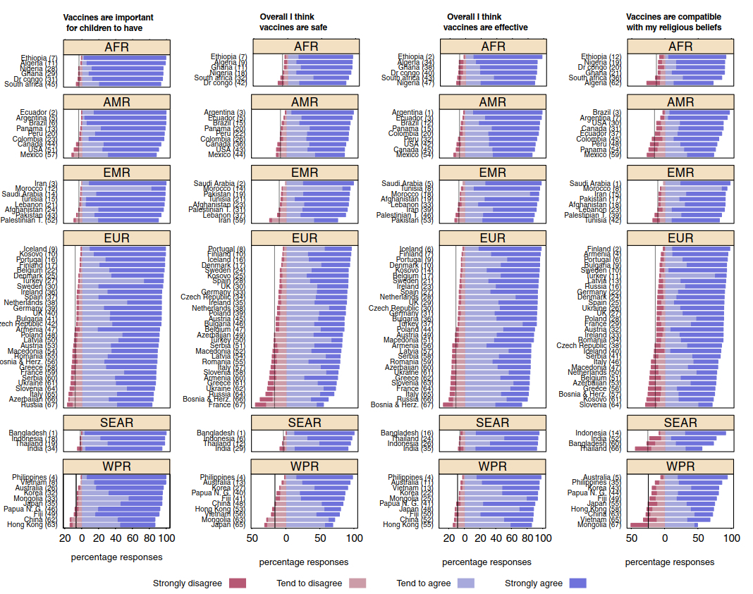 “Paesi con alti livelli di istruzione e un buon accesso ai servizi sanitari sono associati a livelli più bassi di opinioni positive [verso i vaccini], indicando l’emergere di una relazione inversa tra le opinioni sui vaccini e le condizioni socioeconomiche”
