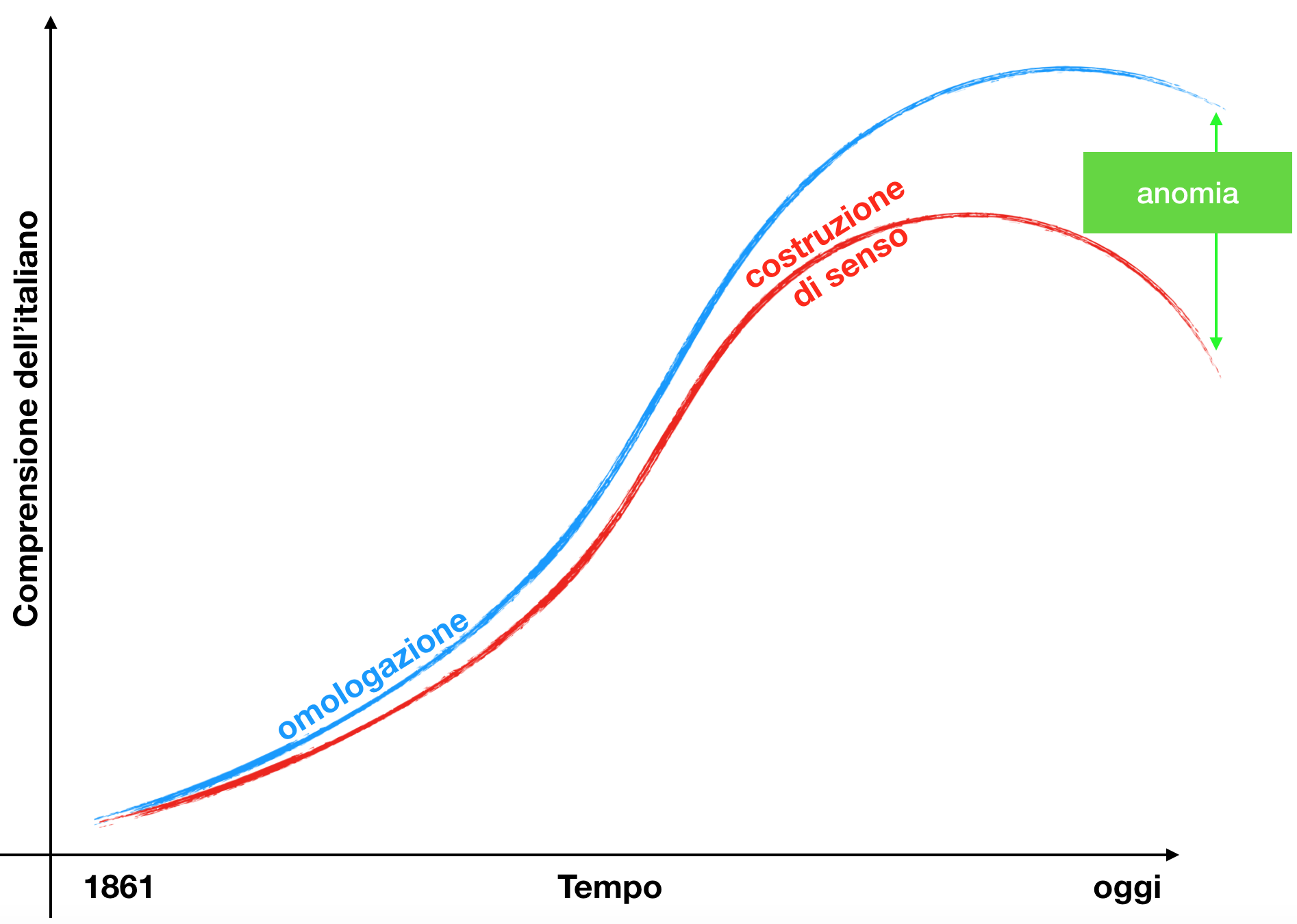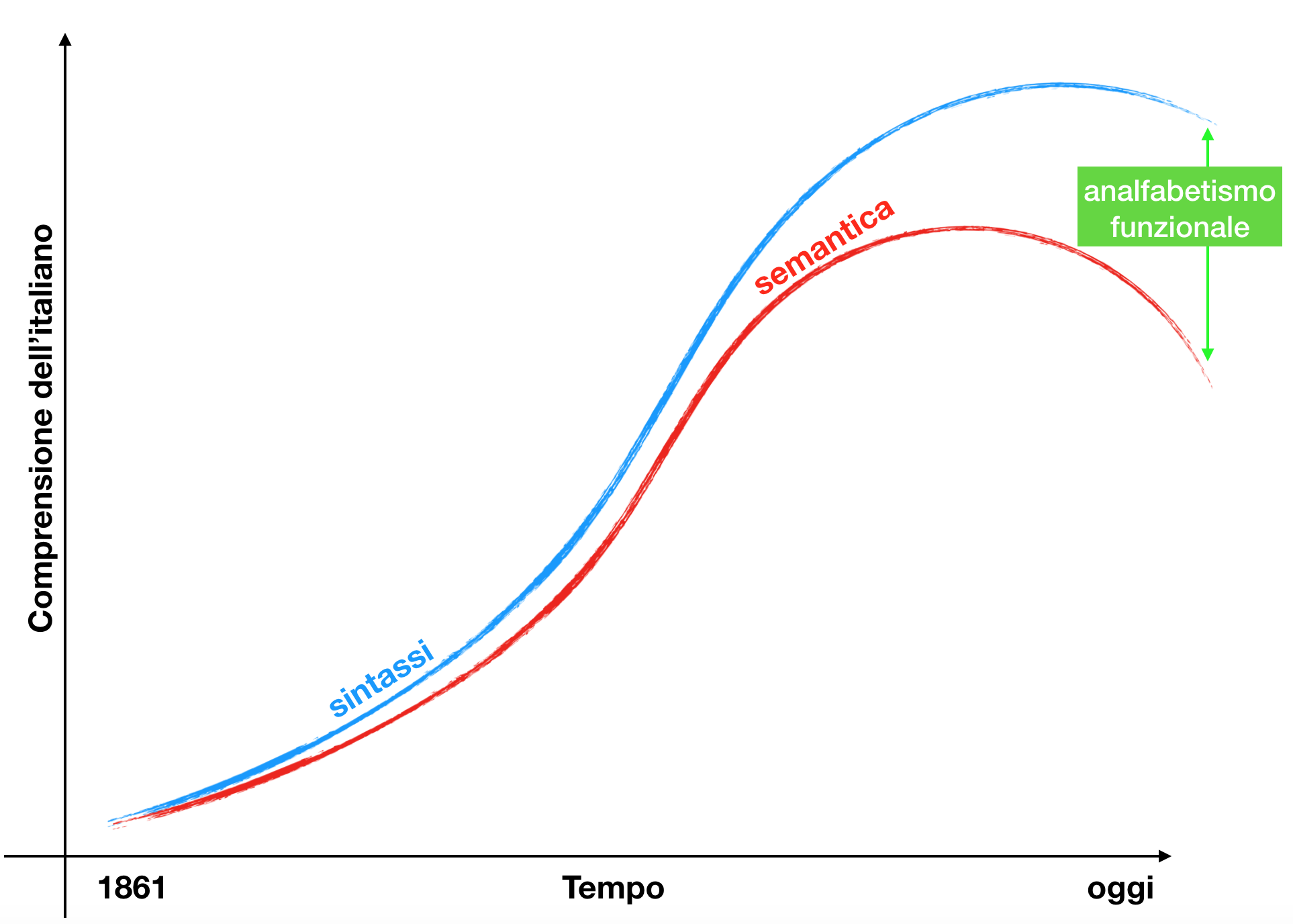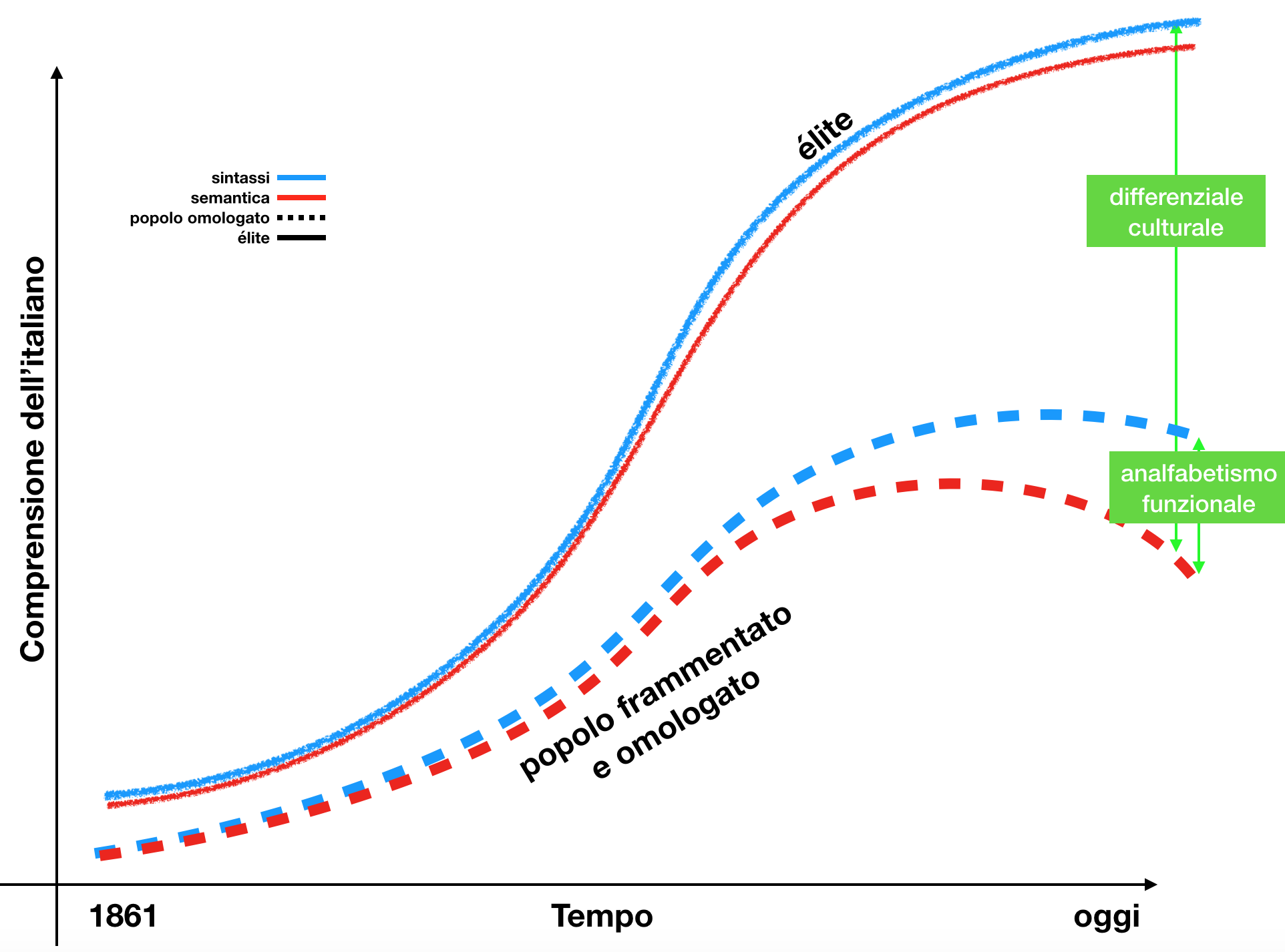 Ma poiché tutti i processi sociali si realizzano attraverso il linguaggio, la distanza crescente fra sintassi (la conoscenza delle parole) e semantica (la consapevolezza del senso del discorso – e non affrontiamo qui il più pertinente tema della pragmatica) portano a una discrasia fra complessità come omologazione entro apparenti differenze, e complessità come innovazione e produzione di senso.