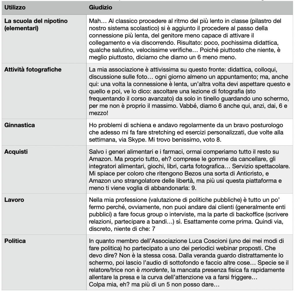 Insomma andiamo di Internet! Stiamo tappati in casa e interagiamo col mondo attraverso quella finestrella. Un po’ ne ho accennato nelle note precedenti, ora vi faccio un consuntivo che dipende, ovviamente, da quanto ho usato il mezzo ma, soprattutto, dalla connessione che c’è dalle mie parti, che col sovraccarico attuale non è un granché.