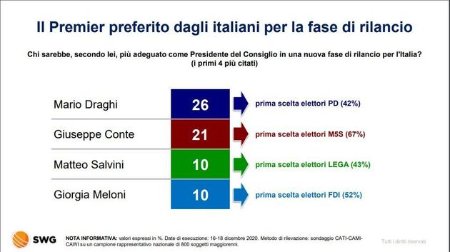 Ultimo arrivato alla mia attenzione quello commissionato dall’HuffPost (pubblicato il 19 dicembre 2020) sui leader più graditi dagli italiani.