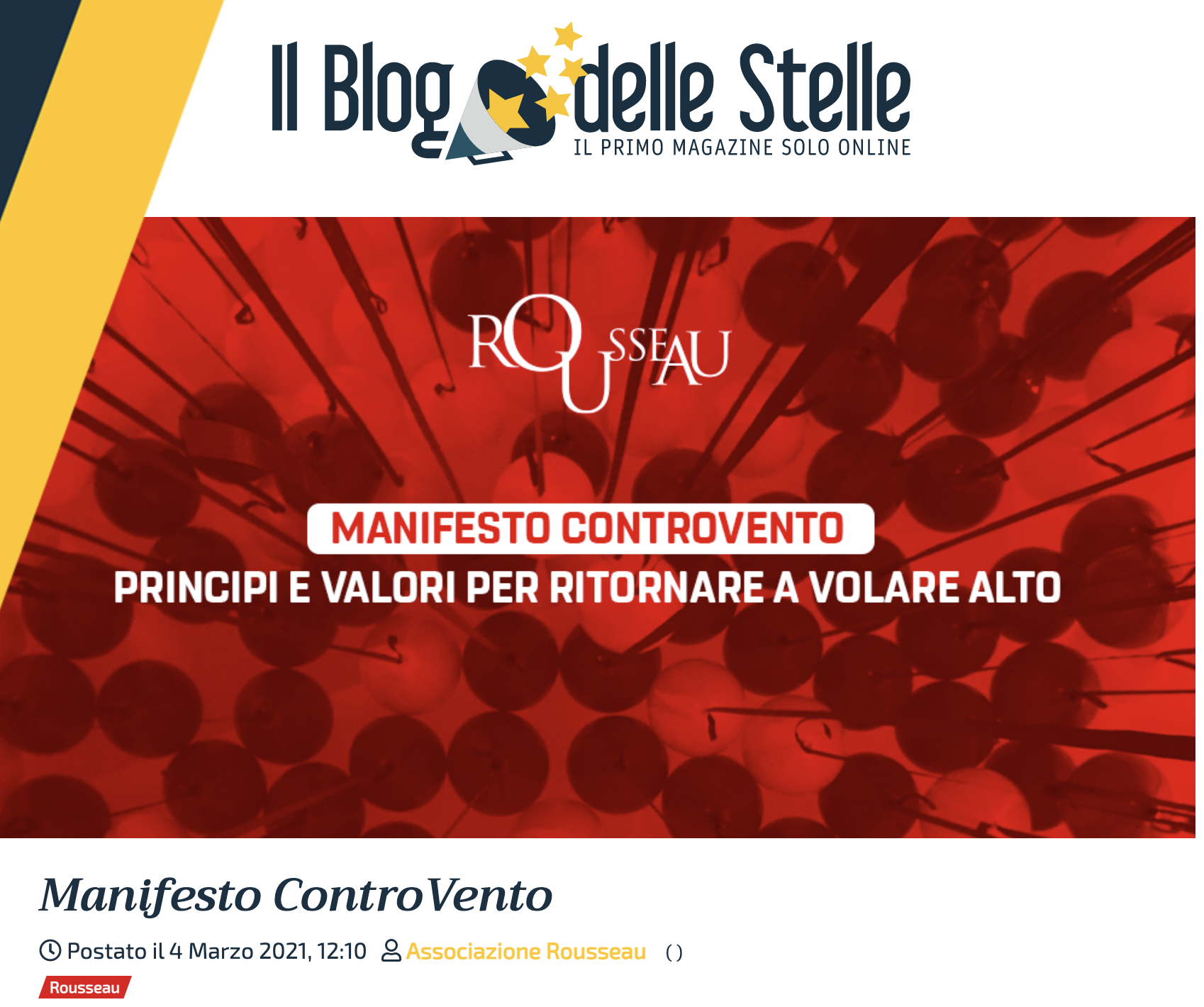 Casaleggio annuncia per la settimana prossima la presentazione del Manifesto ControVento, che darà vita a un nuovo movimento e segnerà il punto di non ritorno della scissione nel Movimento 5 Stelle (un articolo breve lo trovate QUI; l’annuncio completo, sul sito della piattaforma Rousseau, lo trovate QUI).