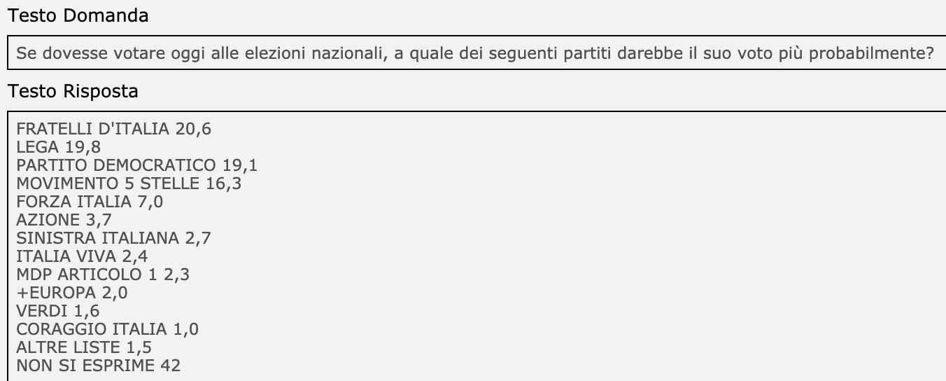 Il sondaggio SWG per la 7, di qualche giorno fa, fornisce questi risultati