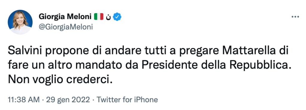 Meloni 6. Per carità, è un “6” da comparare al deserto culturale e intellettuale in cui si colloca, considerando anche il fatto che aveva pochi Grandi Elettori da muovere.