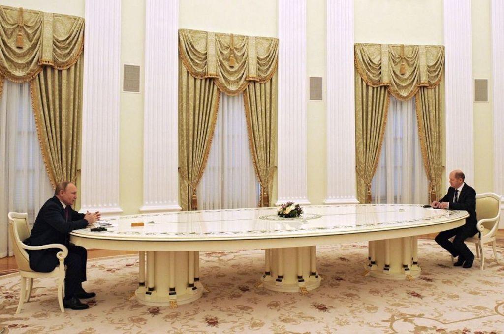 The New York Times has broached the awkward question that has been on the minds of anyone who has paid even passing attention to Vladimir Putin recently: Has he lost his marbles? The Times reports that people have noticed that Putin “has fundamentally changed amid the pandemic, a shift that may have left him more paranoid, more aggrieved, and more reckless.” Two years since the onset of COVID, the Russian leader remains severely isolated, interacting with cabinet officials largely via video and keeping trips abroad to a minimum. When he does have to meet people face-to-face in Moscow, whether it’s Foreign Minister Sergey Lavrov or French president Emmanuel Macron, they must first pass through a “disinfection tunnel” and then sit at a social distance of Olympian proportions, at tables so long that they have become a physical manifestation of Putin’s remoteness from the rest of the world (Ryu Spaeth, Is Putin Sane?, “Intelligencer,” 19 feb 2022).