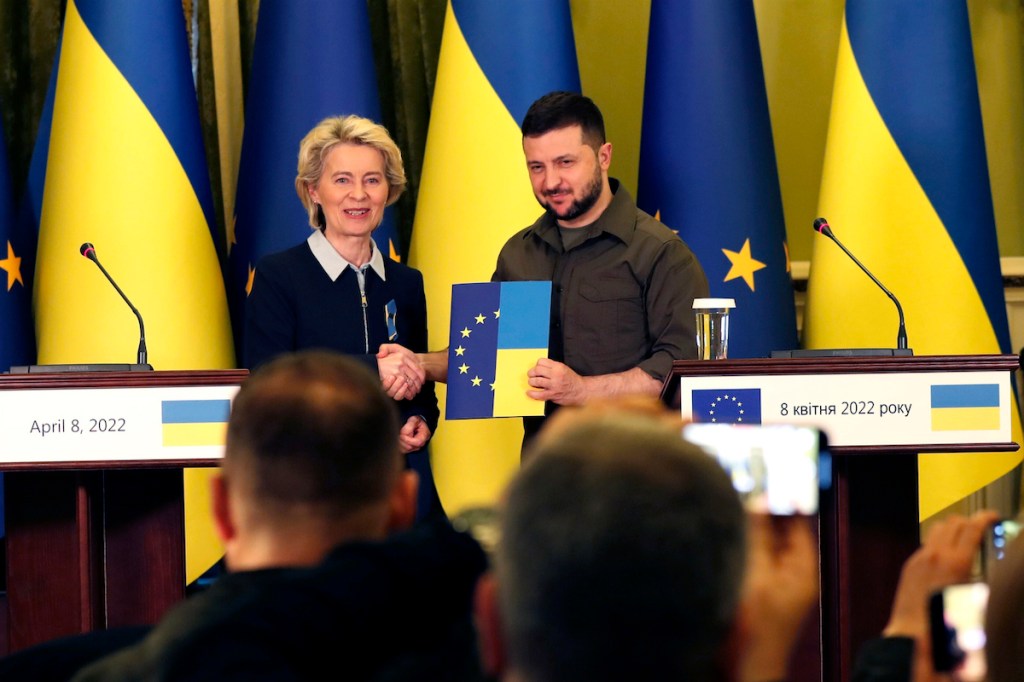 Quando Von der Leyen andò a Kyiv per la foto-opportunità con Zelensky, entrambi lo sapevano bene (nella foto – in copertina a questo articolo – lei consegna al leader ucraino il questionario per l’adesione all’UE; pare gli stia affiggendo una medaglia, ma gli ha solo dato il documento burocratico per avviare la procedura di richiesta).