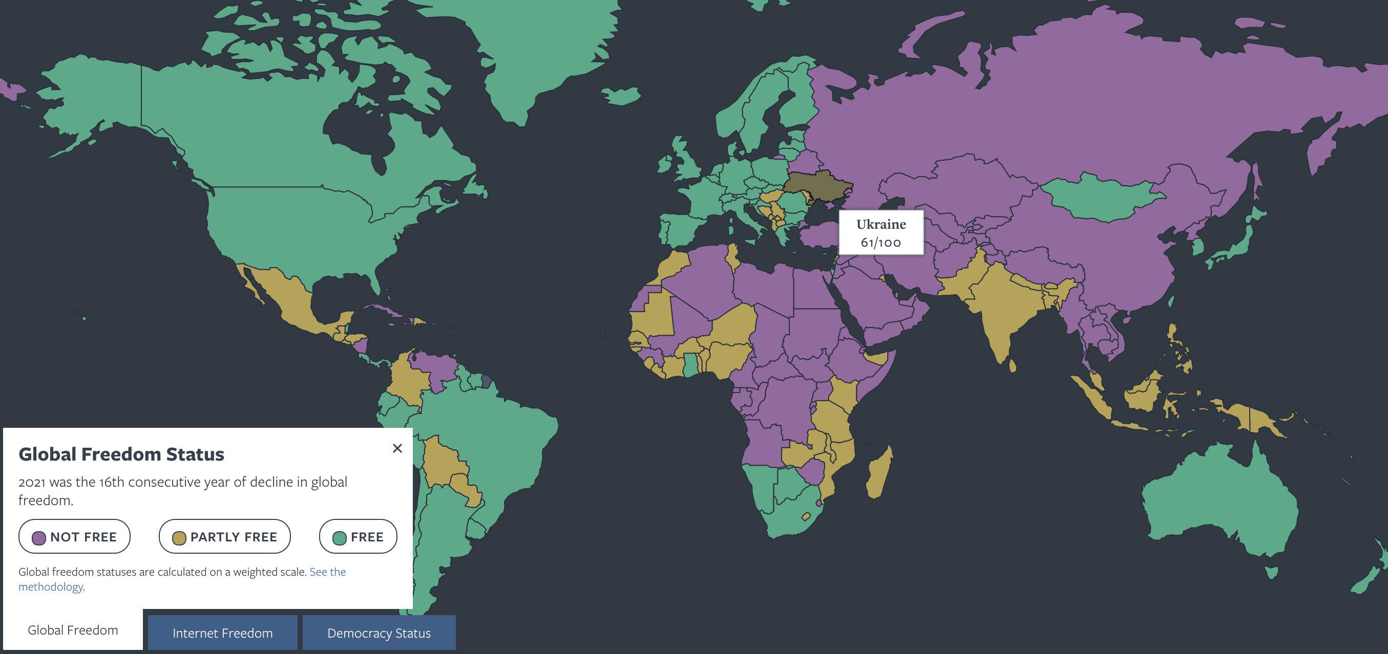 Quello che affermo, è che un’Ucraina nell’Unione sarebbe una nuova Ungheria, semplicemente peggiore. La nota organizzazione Freedom House, che monitora i livelli di democrazia nel mondo, scrive: