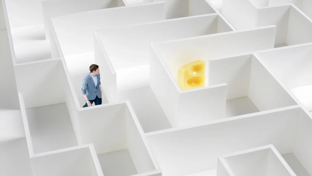 Ogni dannato atomo di idrogeno, anche se non ha mai saputo perché, o come, non poteva che andare a finire dove è ora. Ma quell’analogia – che potrebbe essere adeguata, semplicisticamente, per rappresentare il mondo fisico – non va mica bene per i nostri topolini nel labirinto, di cui ho scritto la volta scorsa.