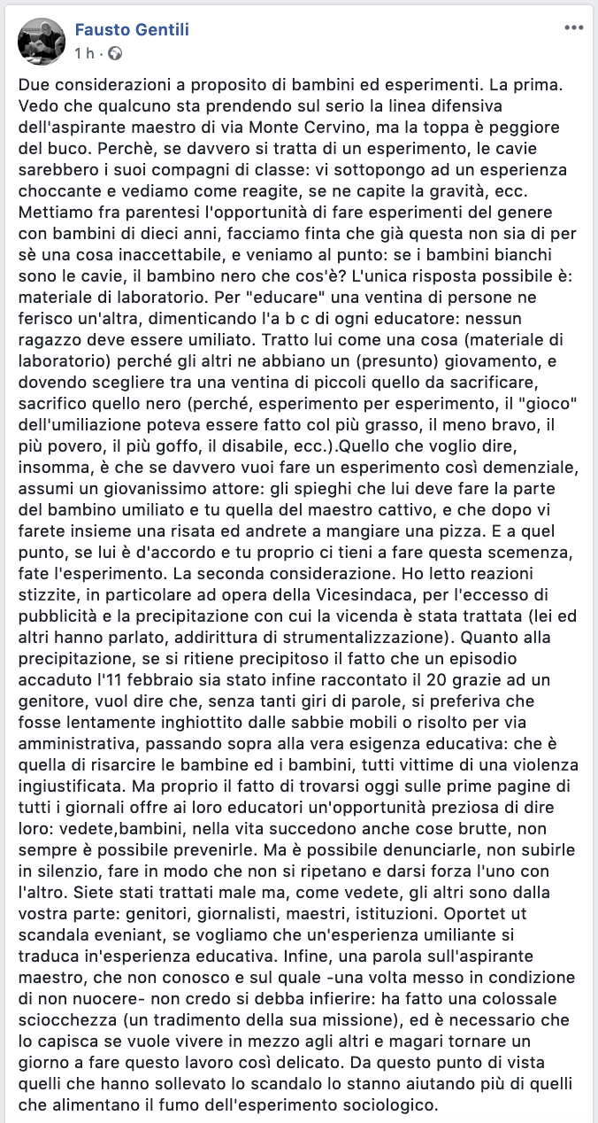 Un amico di Foligno, docente, ha scritto su Facebook (e noi – col suo consenso – riproponiamo):